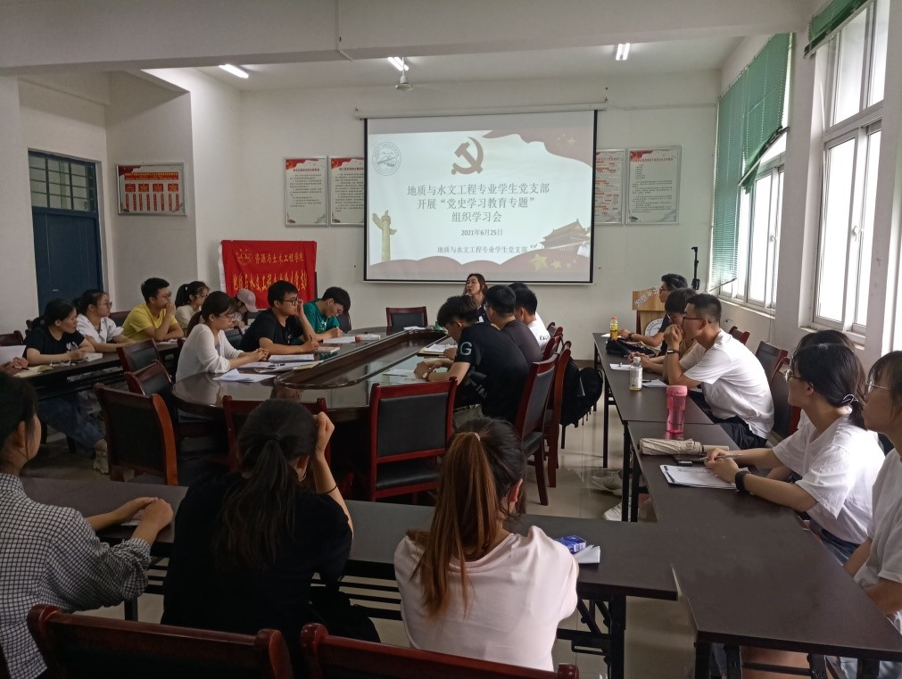 2021年6月25日中午,资源与土木工程学院地质与水文工程专业学生党支部在工科楼三楼会议室召开了以“党史学习教育专题”为主题的组织生活会。会议由支部书记曹静主持,支部全体成员参加。