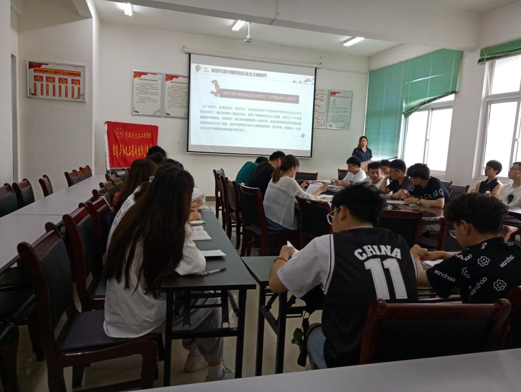 2021年6月25日下午,地质与水文工程专业学生党支部在工科楼三楼会议室开展“中国特色社会主义新时代”党课活动,党课由支部书记曹静授课,支部全体人员参加。