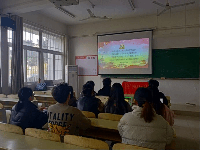 2022年2月22日,地质与水文工程专业学生党支部在工科楼A106开展认真学习习近平总书记重要文章《坚持走中国特色社会主义法治体系建设》理论学习会,会议由支部书记赵景宇组织开展,支部全体同志参与。