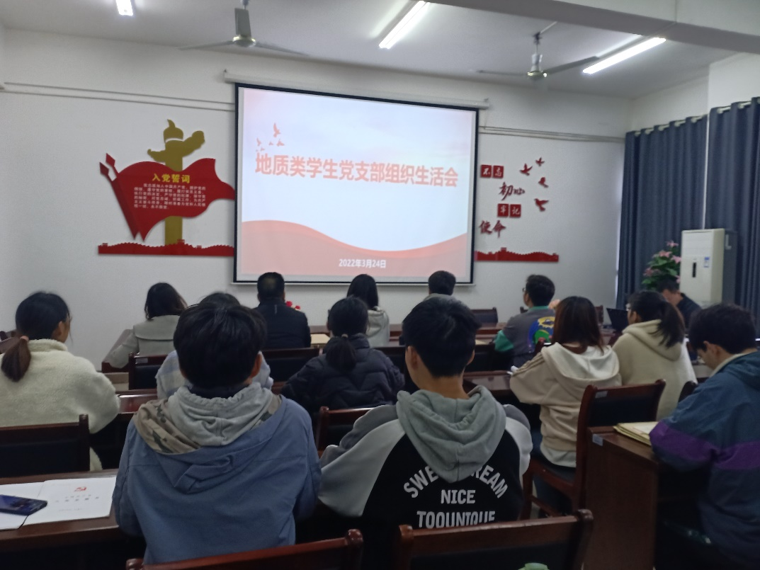 2022年3月24日,地质类专业学生党支部在工科楼A402召开了2021年度组织生活会和民主评议党员会议,会议由支部书记赵景宇主持,支部部分成员参加。