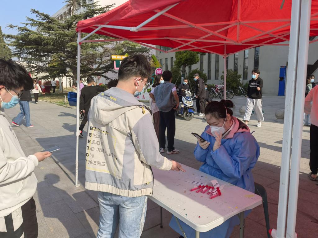 2022年4月9日,在宿州学院东校区新体育馆门口进行全员核酸检测。