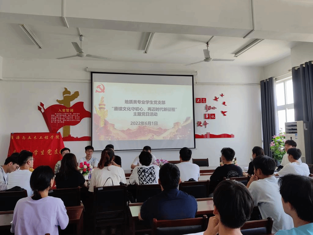 2022年6月1日,地质类专业学生党支部,线下组织开展“赓续文化守初心,再迈时代新征程”主题党日活动。