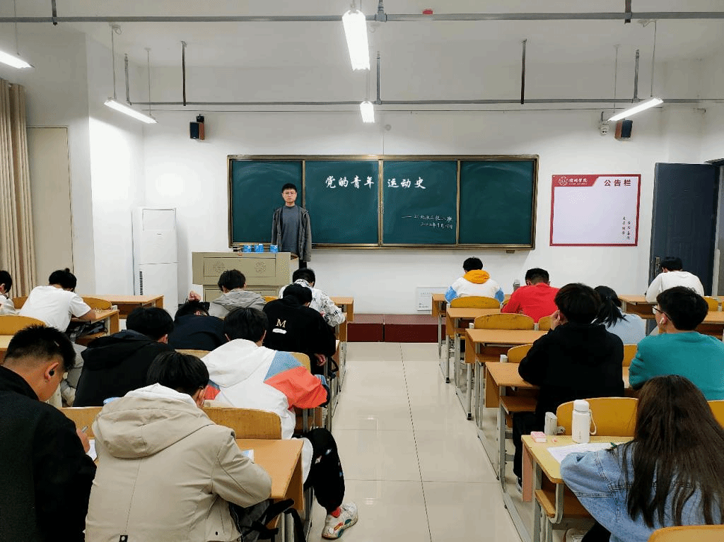 各班级举行专题活动的方法各不相同,有使用PPT课件,采取图片加文字的形式来讲述内容;有的采用口述的方式来讲述内容;有的则带领全班同学观看红色电影来表达情感。在活动过程中,同学们都在认真学习,在PPT课件、红色电影中学习党的思想。各班团支书带领同学们回顾了中国共产党领导广大青年在革命、建设、改革不同历史时期接续奋斗、建功立业的历程;重温了102年前五四运动期间青年学子为救亡图存而不屈不挠的奋斗历程,并表示无论过去、现在还是未来,中国青年始终是实现中华民族伟大复兴的先锋力。