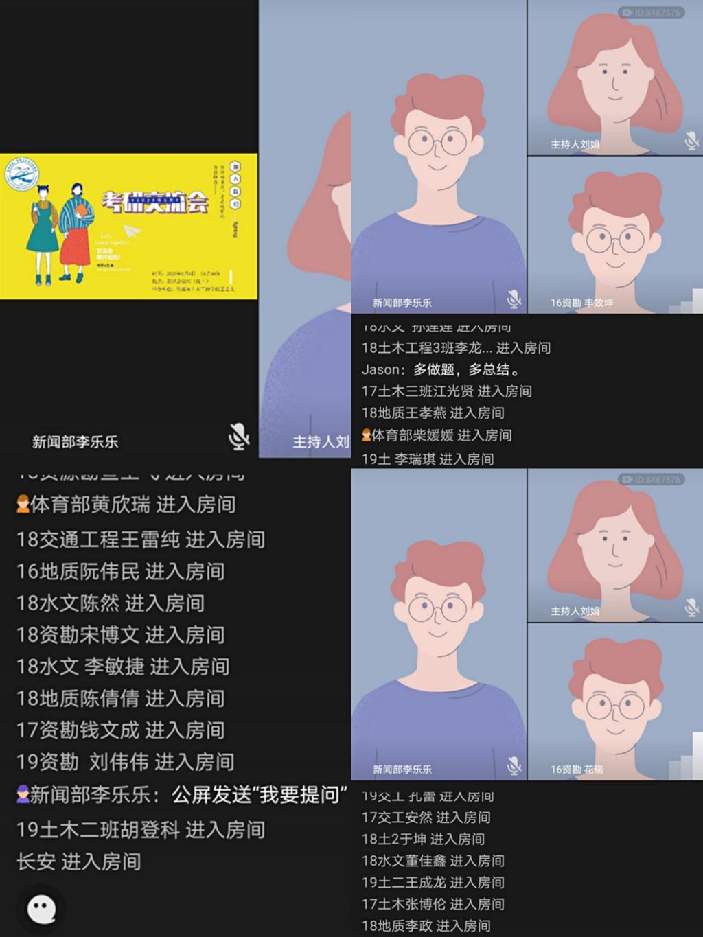 为了让同学们对考研有更加充分的认识和了解,提高同学们的学习热情和考研激情,明确本专业的考研方向和发展前景,6月6日下午,资源与土木工程学院通过QQ课堂在线上举办了2020届考研经验交流会。