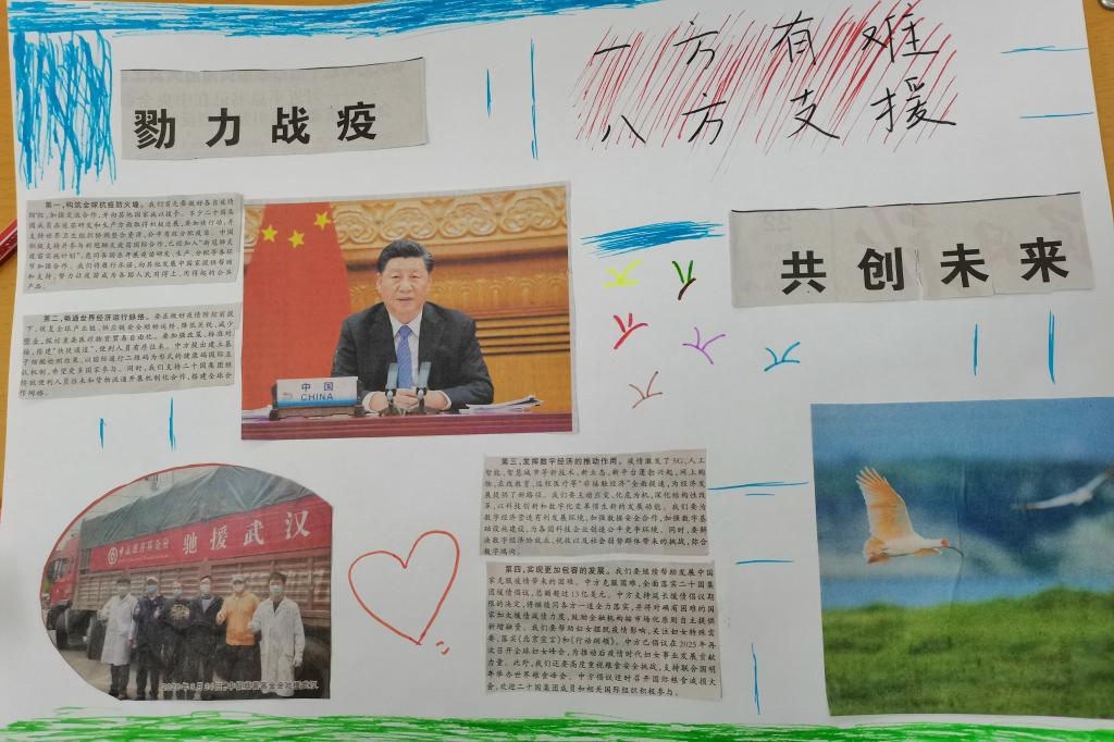本次比赛共有十四组参加比赛。首先,由工作人员为参赛选手们分发剪刀、报纸、白纸和画笔,在主持人简单介绍规则后,比赛正式开始。各组同学大胆构思,自由发挥。同学们分工明确,剪报、排版、粘贴、绘画,分工明确,有序进行。随后,各组人员依次上台讲述作品的设计理念,同学们精彩的演讲赢得评委和观众们的阵阵掌声。最后,主持人宣布比赛结果,获奖人员进行合影留念。