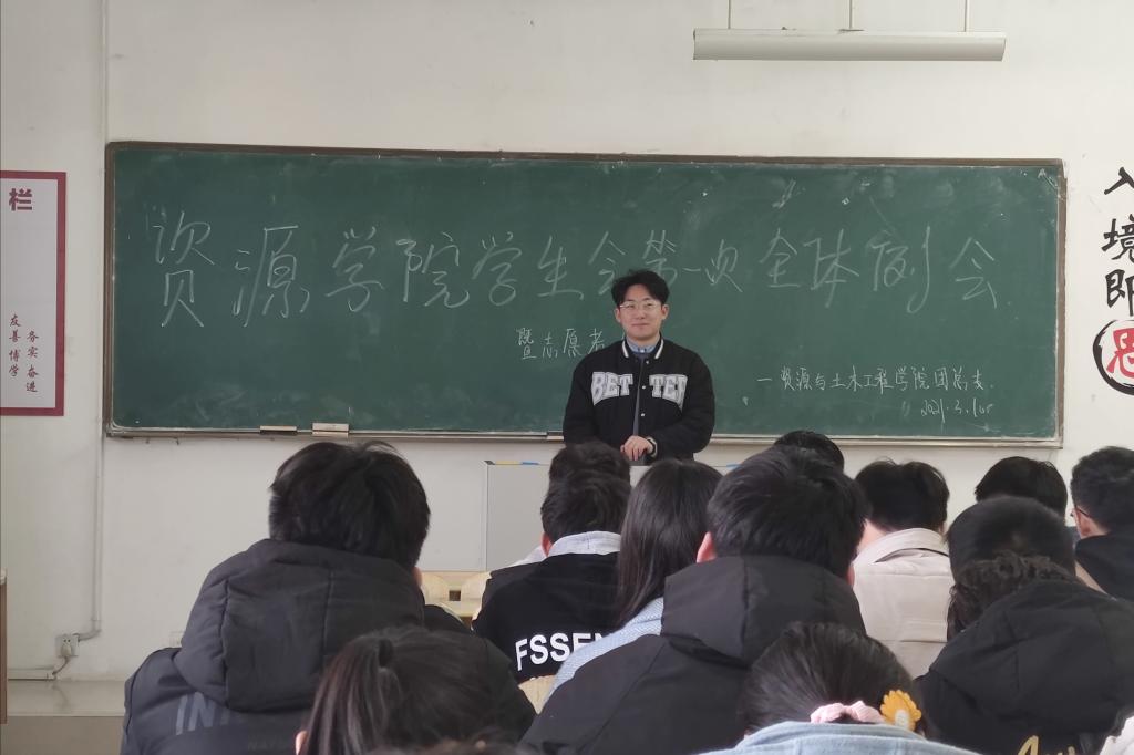 3月10日中午,资源与土木工程学院于工科楼A106教室召开了第一次学生会全体例会暨志愿者大会。学生会全体人员及志愿者参加本次会议。