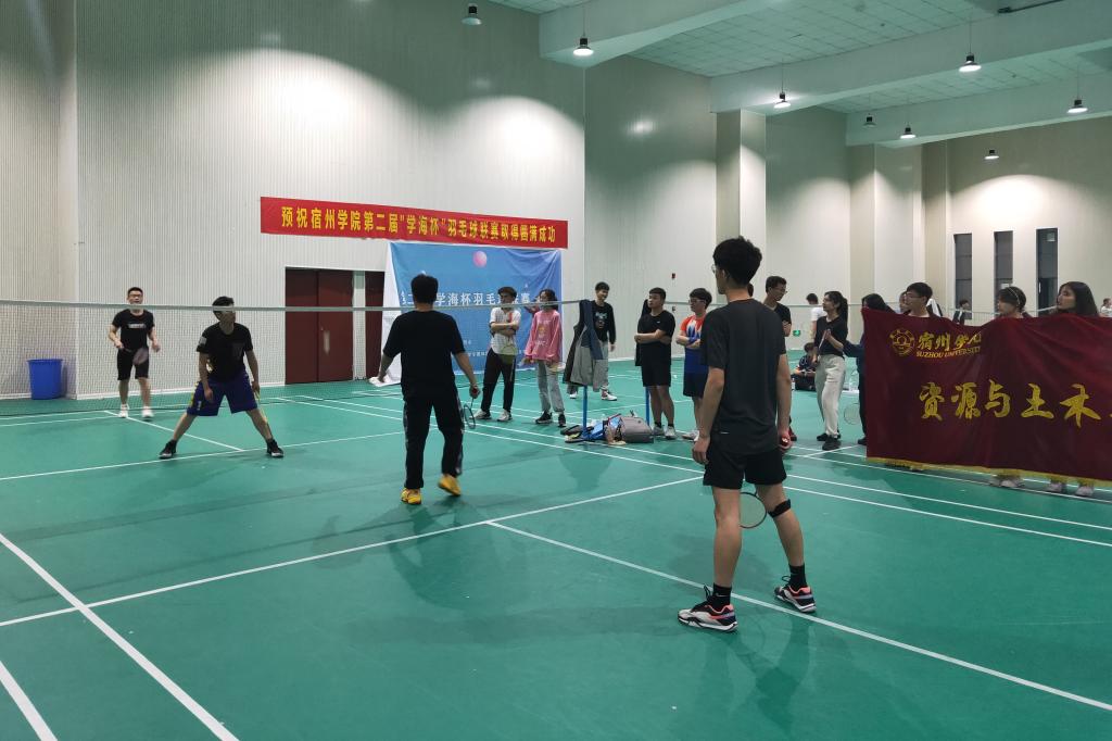 4月12日晚,宿州学院第二届“学海杯”羽毛球联赛在新体育馆四楼羽毛球馆举行,旨在增强同学们对体育锻炼的兴趣,增进各院之间的交流。本次比赛由资源学院对阵商学院。