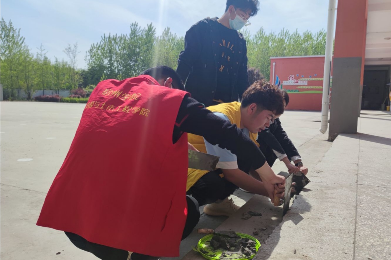 下午一点半,志愿者们准时到达新河小学并在门口进行人员分配。本次活动主要分为两部分,一部分是志愿者和孩子们开展各类特色的教学和互动游戏,另一部分的志愿者进行资源与土木工程学院特色的“微砌公益”,为小学的破损的台阶和墙角进行修补。教室内,传来了一片片的欢声笑语,志愿者们和孩子们一起做智力游戏,极大的调动了孩子们的积极性。教室外,进行“微砌公益”的志愿者们的埋头苦干,为孩子们改善更好的学习环境。最后,志愿者们在校门前合影留念。