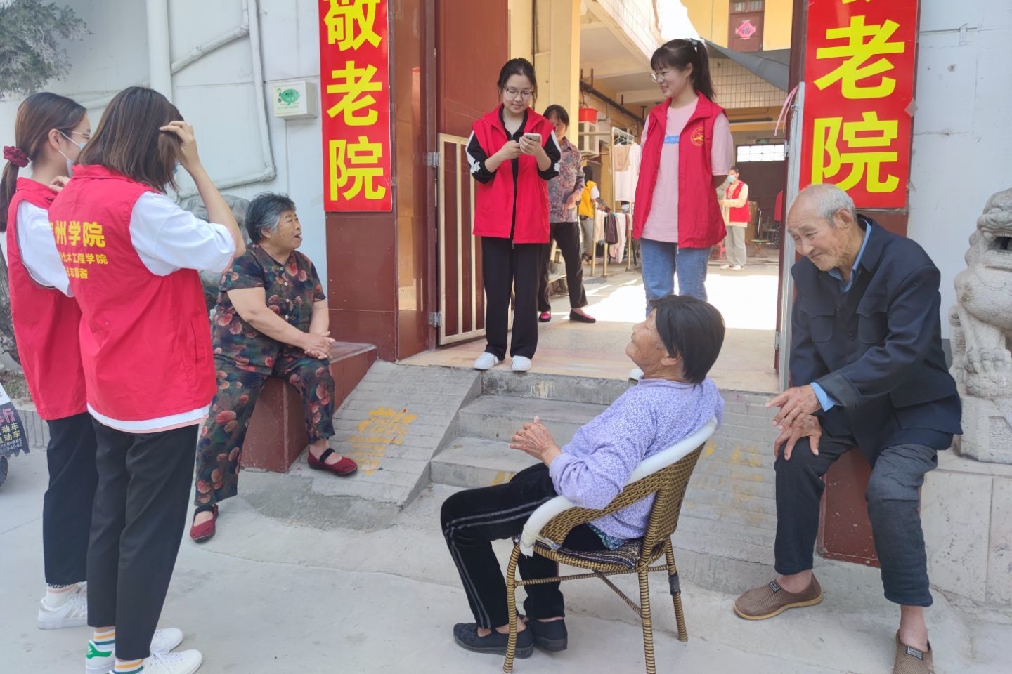 上午7点40分,志愿者们统一集合后乘坐公交车前往汇源敬老院。到达敬老院后,志愿者们进行了简单的任务分配。活动期间,志愿者们热情的和老人们交流,询问他们的身体状况和日常饮食,老人们精神洋溢地和志愿者们分享开心的事情。志愿者们还帮助了敬老院工作人员清洗、晾晒被子,搀扶老人们散步、休息,敬老院内处处洋溢着欢声笑语。最后,志愿者们在门前进行合影留念。