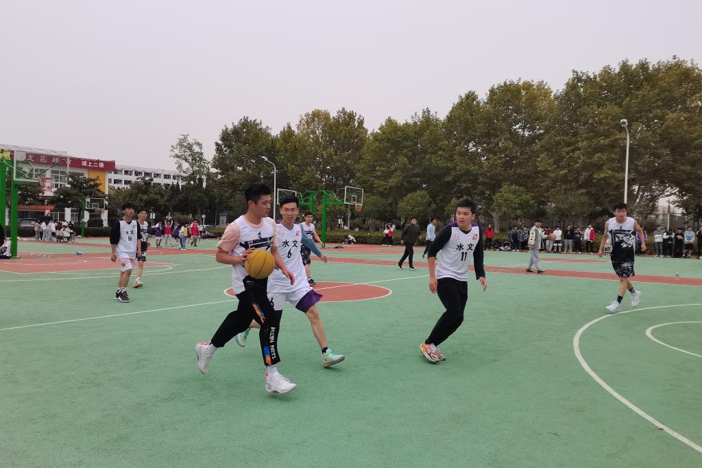 本场比赛由土木一班对阵土木二班、地质二班对阵水文班。比赛开始前,参赛选手们在球场中间进行简单的赛前交流。随着裁判口中的哨声响起,球员们迅速进入比赛状态。队员们熟练的动作、灵活的运球、帅气的投篮,让在场的观众发出阵阵喝彩。参赛队员们竭尽所能,激情四射,战局愈演愈烈,激动人心。经过各班队员的全力拼搏,最终土木二班、地质二班赢得了本场比赛的胜利。