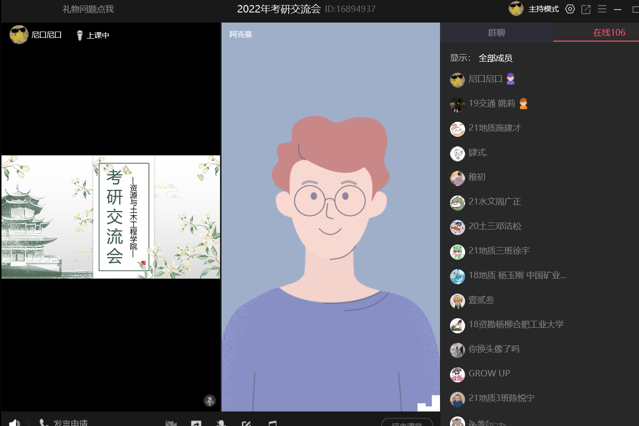 4月16日下午,资源与土木工程学院于线上举行2022年考研交流分享会。旨在分享“考研经验”,进一步提高学生考研技巧掌握度,帮助在校学生明确考研目标。