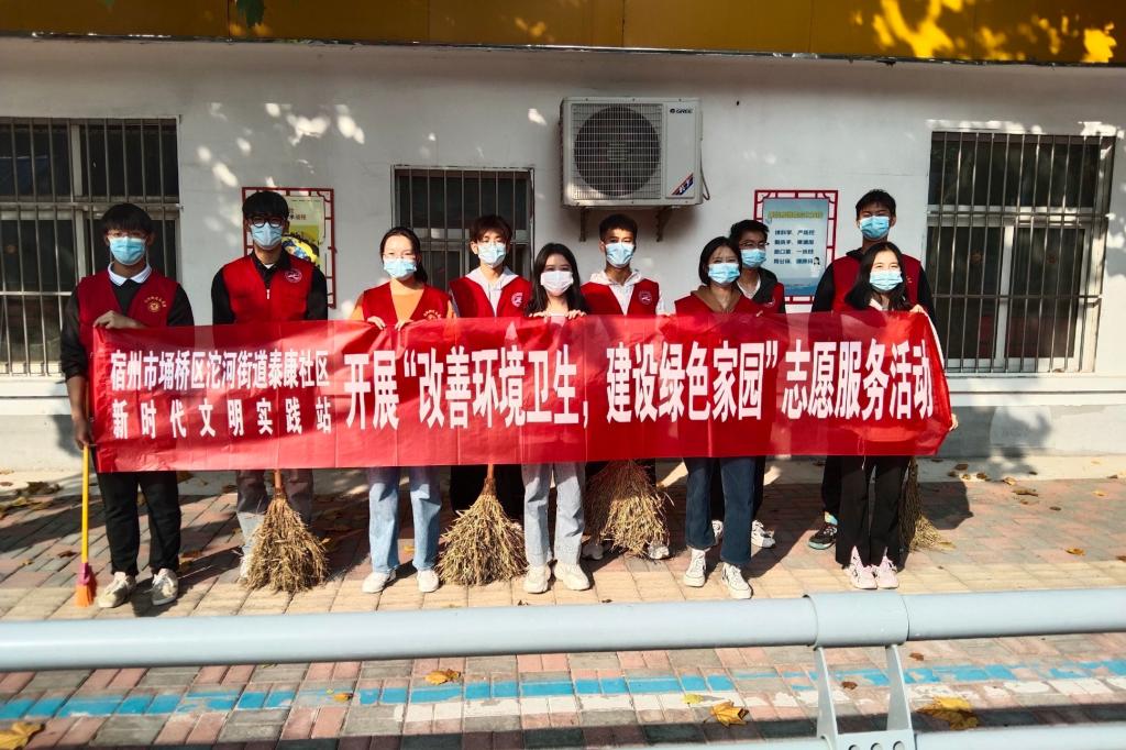 10月29日,资源与土木工程学院于宿州市泰康社区成功开展“树文明新风,创绿色城市”社区卫生清扫志愿服务活动。旨在发扬青年学生的无私奉献精神,培养同学们以身践行社会主义核心价值观,促进社区营造温馨、和谐的社会氛围。本次社区实践活动共有13名志愿者参加。