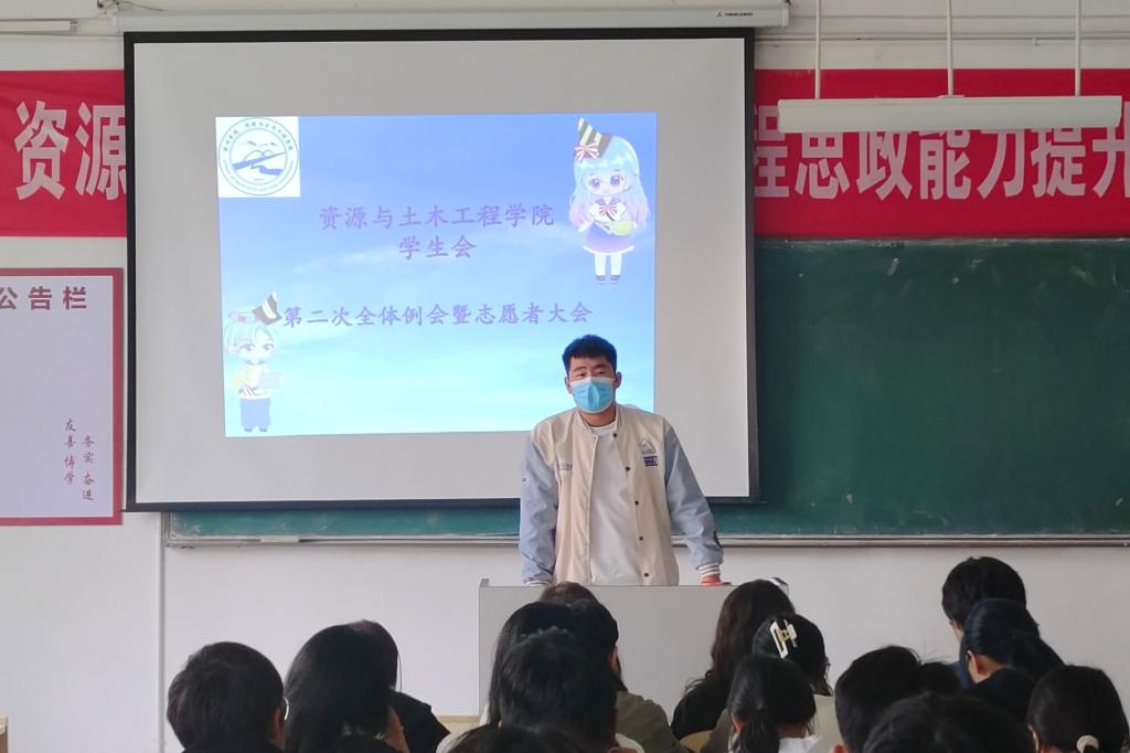 11月1日中午,资源与土木工程学院于工科楼A106教室召开了第二次全体例会暨志愿者大会,参加本次例会的有学生会全体成员。