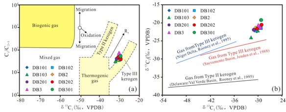 Figure Genesis distinction diagram of natural gases in the Dabei Gas Field.