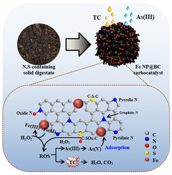 2021年8月26日,我院水文与水资源工程教研室付敦博士以第一作者在Environmental Pollution (SCI,中科院一区Top期刊,影响因子:8.071)上发表题为“Co-oxidative removal of arsenite and tetracycline based on a heterogeneous Fenton-like reaction using iron nanoparticles-impregnated biochar”的研究论文。该文介绍了沼渣生物炭基纳米复合材料介导的类芬顿反应高效修复抗生素和有毒砷双重污染的水体,揭示了氮硫自掺杂生物炭和纳米铁协同促进双氧水分解产活性氧自由基的机理,为沼渣废物管理兼具有机无机复合污染水体修复提供了思路。