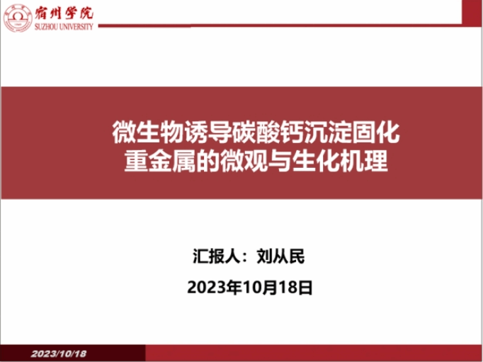 2023年9月20日下午,刘从民博士在工科楼A106做题为“微生物诱导碳酸钙沉淀固化重金属的微观与生化机理”的学术报告,土木工程专业部分学生参加了讲座。