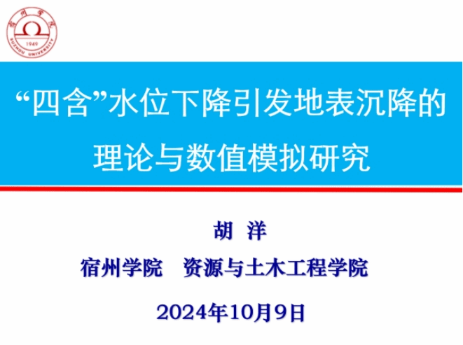 2024年10月9日下午,孙磊博士、胡洋博士在工科楼A106为22级土木工程、23级土木工程专升本2班分别做了题为《交通荷载下软土路基的长期沉降研究》《“四含”水位下降引发地表沉降的理论与数值模拟研究》的专题学术讲座。