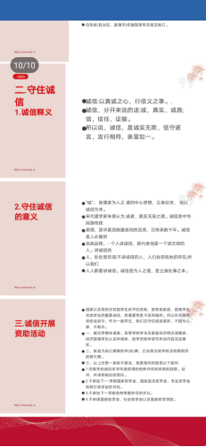 首先是由班长周太华同学发言,指出了本次会议的主题:学生资助诚信教育。举办资助诚信教育主题活动,不但有助于增强大学生的诚信意识,促进国家助学贷款工作的顺利开展,又有助于提高大学生的综合素质。古往今来,凡是品德高尚的人,都是诚实守信的人。孔子说:“人而无信,不知其可也。”只有有了诚信,你才能在社会立足,才能得到别人的尊敬,才能使他人信服,因为谁都不喜欢被欺骗。因此,做一个诚信之人是我们的责任和义务,以及一个做人的最起码的原则!要想做到诚信,就要从生活中每件点点滴滴的小做起。并呼吁我们全体同学做诚信的人。