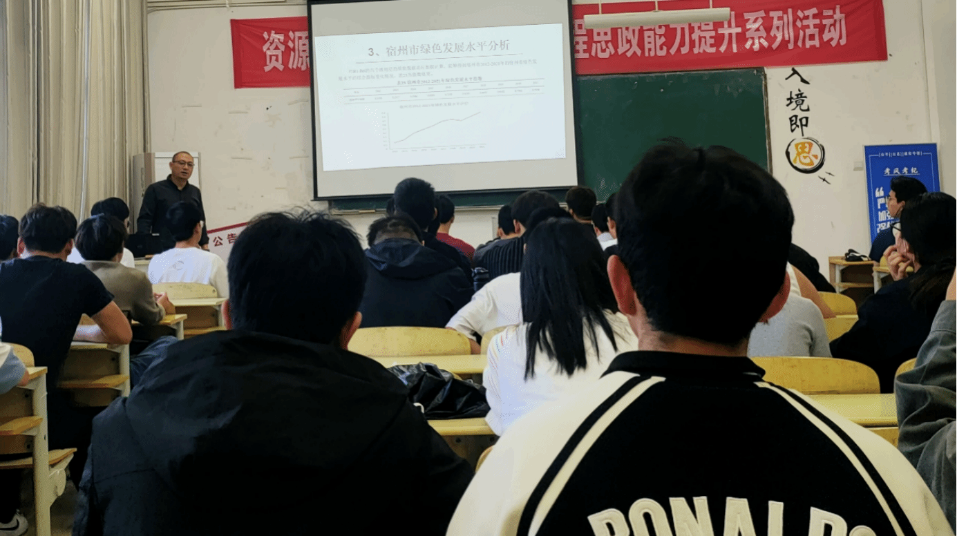 2023年11月1日下午3:00,马诚超老师在工A106做了题为《宿州市绿色发展评价》的学术讲座,一百余名土木工程专业学生参加讲座。