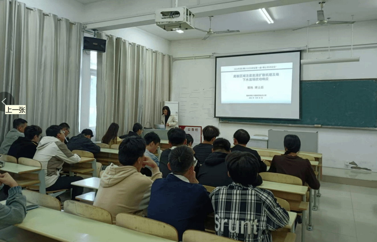 2024年10月30日下午,资源与土木工程学院郭艳博士、朱书梅博士在工科楼A106为23级和22级水文与水资源工程专业学生分别作了题为“底板区域注浆浆液扩散机理及地下水流场扰动响应”、“间歇性开采地下水诱发海水入侵规律研究”的学术讲座。