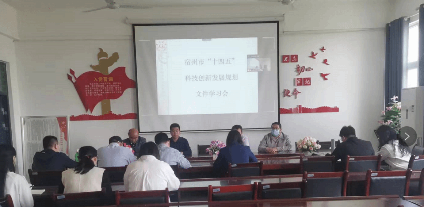 为响应宿州市人民政府办公室关于印发“十四五”科技创新发展规划的通知和宿州学院科研处对于“规划”专题学习的要求,资源与土木工程学院于2022年4月22日在工A402会议室召开宿州市“十四五”科技创新发展规划文件学习会。会议由资源与土木工程学院党委副书记、院长陈松主持,采用线上线下相结合的方式进行,学院全体教职工参加了此次会议。