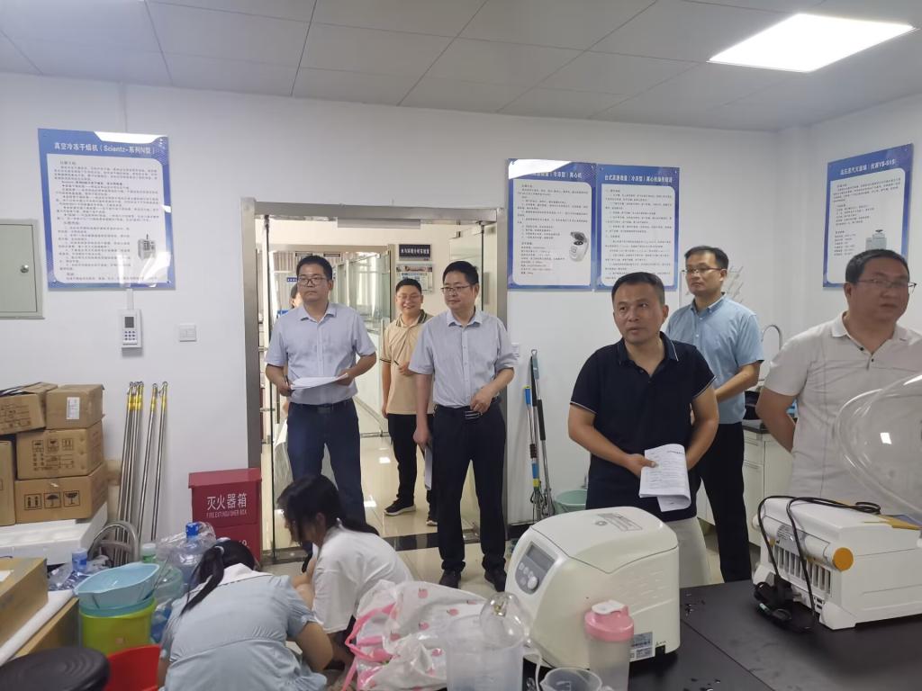 会间,对标近期的省教育厅实验室安全检查,查缺补漏,按照教育部《实验室安全检查项目表(2023)》,围绕安全责任体系、规章制度、教育培训、安全准入等13大项各检查点,由院主要领导带队对工程中心进行了全方位的安全检查,在有机化学预处理实验室,陈松与利用假期,正在开展相关科研的郜庭老师及学生们进行亲切交谈,询问他们的进展情况,并叮嘱实验中注意用水用电安全。通过检查的情况,并调阅相关资料,检查组对工程中心的自行车停放,假期水电安全提出了宝贵建议。
