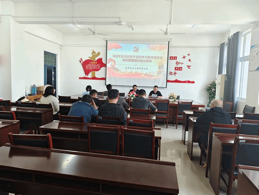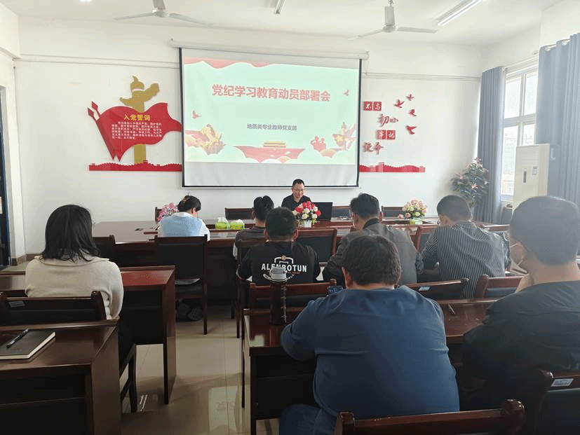 4月22日,地质类专业教师党支部召开党纪学习教育动员会。支部书记王明明领学了“习近平总书记关于党纪学习教育重要讲话和重要指示批示精神”的相关文件。王明明指出,开展党纪学习教育是以习近平同志为核心的党中央作出的重大决策部署,是加强党的纪律建设、推动全面从严治党向纵深发展的重要举措。支部深入学习了“中共宿州学院委员会关于开展党纪学习教育的工作方案”。会议强调全体党员要结合工作实际,指定学习计划,认真学习《中国共产党纪律处分条例》。